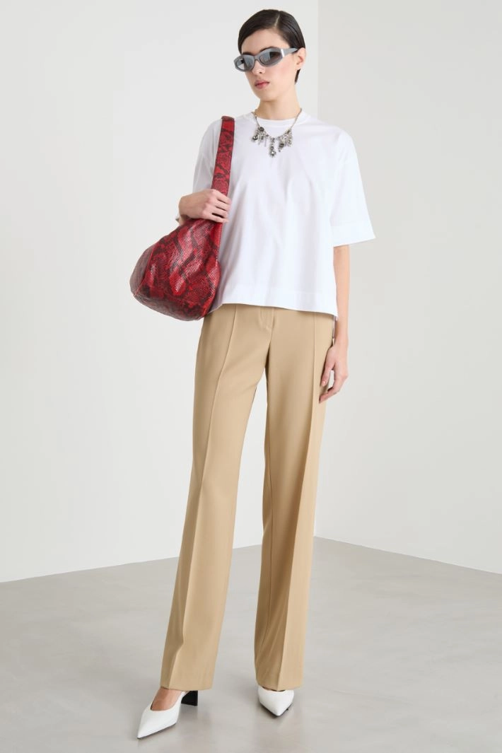 Relaxed-fit T-shirt in cotton jersey, featuring a round neck, short sleeves, small side slits and an asymmetric dropped back hem.