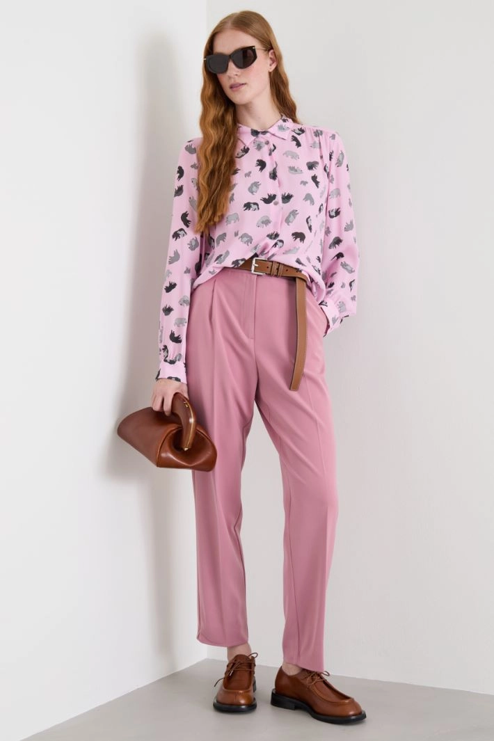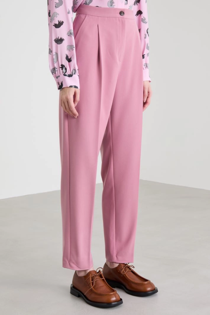 Straight-fit trousers in stretch twill, with darts at the waist, side French pockets and welt pockets on the back, crease along the length and fastening with a hidden zip and button.
