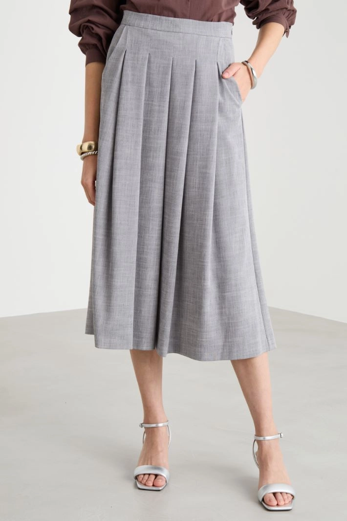 Flared skirt with stitched-down pleats