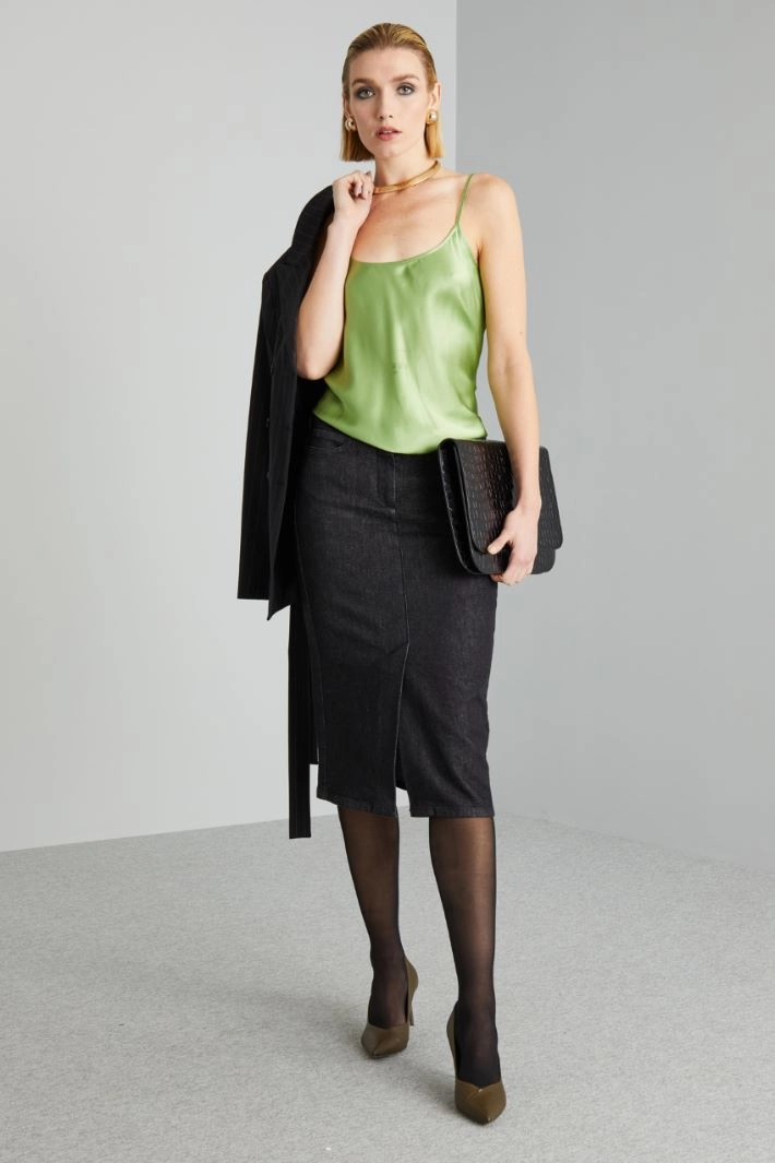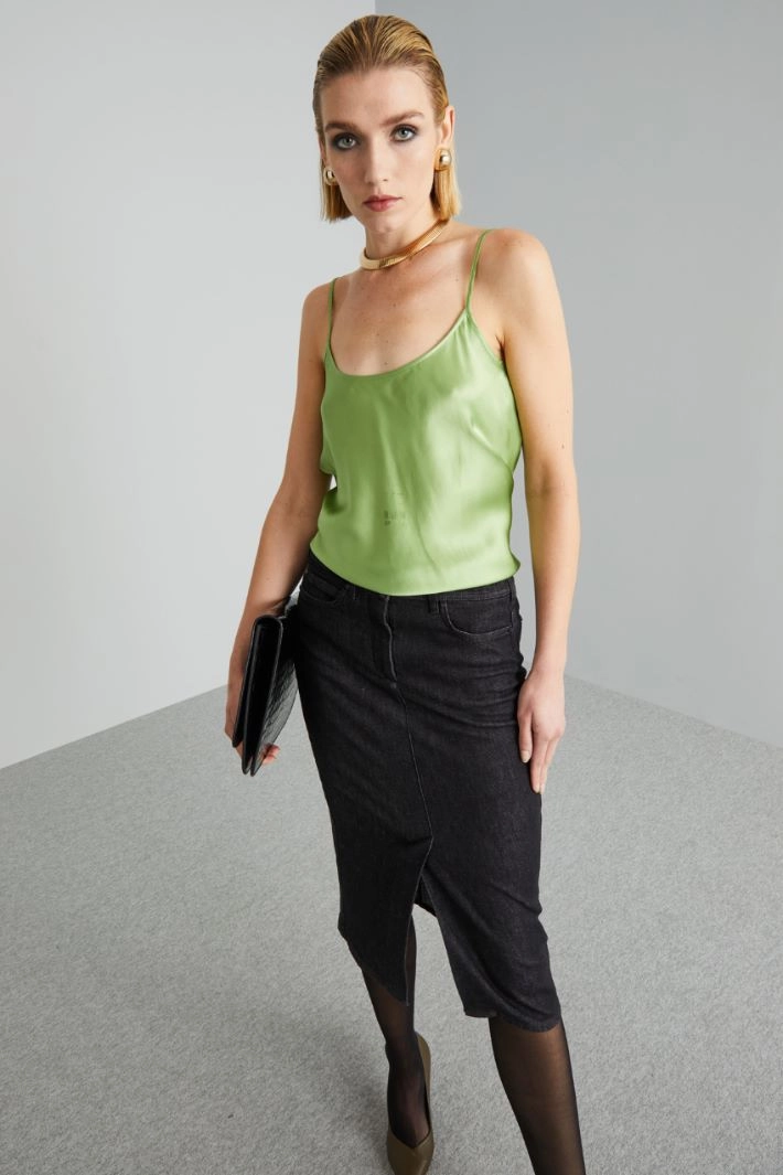 Slip-fit slip top in pure silk satin, with U-neckline and thin straps.